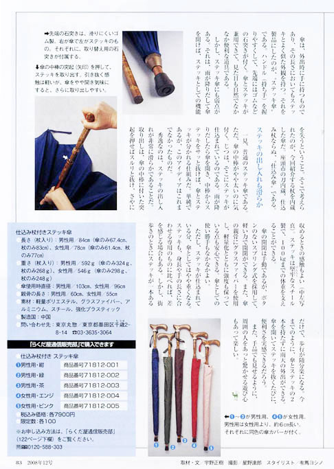 2008年6月19日 「サライ」 小学館 「ステッキ・イン・アンブレラ」が紹介されました。